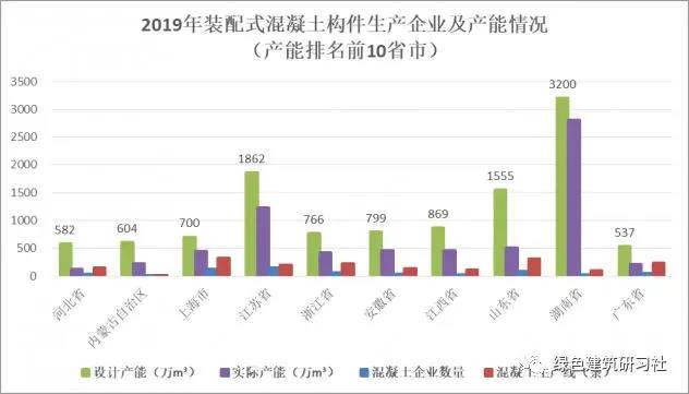 圖5 2019年裝配式混凝土構(gòu)件生產(chǎn)企業(yè)及產(chǎn)能情況(產(chǎn)能排名前10省市)