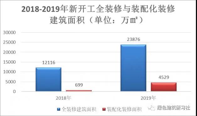 據(jù)統(tǒng)計(jì),2019年,全裝修建筑面積為2.4億平方米,2018年為1.2億平方米,增長(zhǎng)一倍。其中,2019年裝配化裝修建筑面積為4529萬 m²,2018年這一指標(biāo)為699萬 m²,增長(zhǎng)水平是2018年的5.5倍,發(fā)展速度較快,但總量還是偏少。