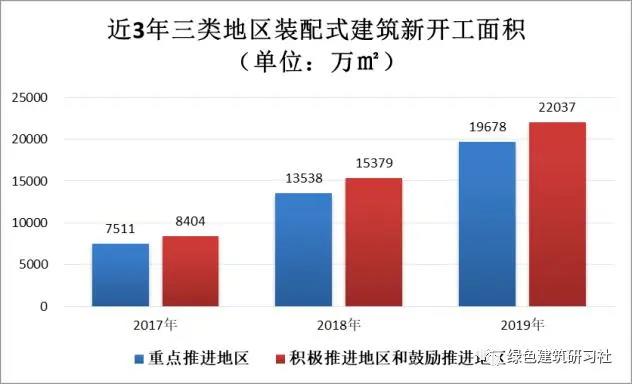 從近三年的統(tǒng)計(jì)情況上來看,重點(diǎn)推進(jìn)地區(qū)新開工裝配式建筑面積分別為7511萬m2、13538萬m2、19678萬m2,占全國(guó)的比例分別為47.2%、46.8%、47.1%,這些地區(qū)裝配式建筑政策措施支持力度大,產(chǎn)業(yè)發(fā)展基礎(chǔ)好,形成了良好的政策氛圍和市場(chǎng)發(fā)展環(huán)境。