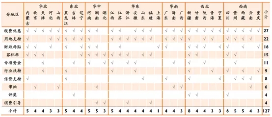 目前,全國31個省份均發(fā)布了相關(guān)的激勵政策,新疆的激勵政策類型最多(8項(xiàng)),其次是四川省(6項(xiàng))。全國政策激勵平均為4項(xiàng),其中激勵政策條款數(shù)量靠前的省份依次是新疆、四川、黑龍江、河南、湖南、內(nèi)蒙古、江西、貴州、西藏等。