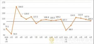 2021年6月建筑材料工業(yè)景氣指數(shù)(MPI)運(yùn)行情況